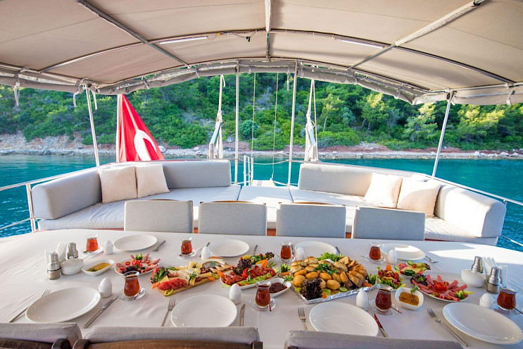 Miss Flower is a 24-meter standard class gulet featuring 6 comfortable cabins and accommodating up to 12 guests.
